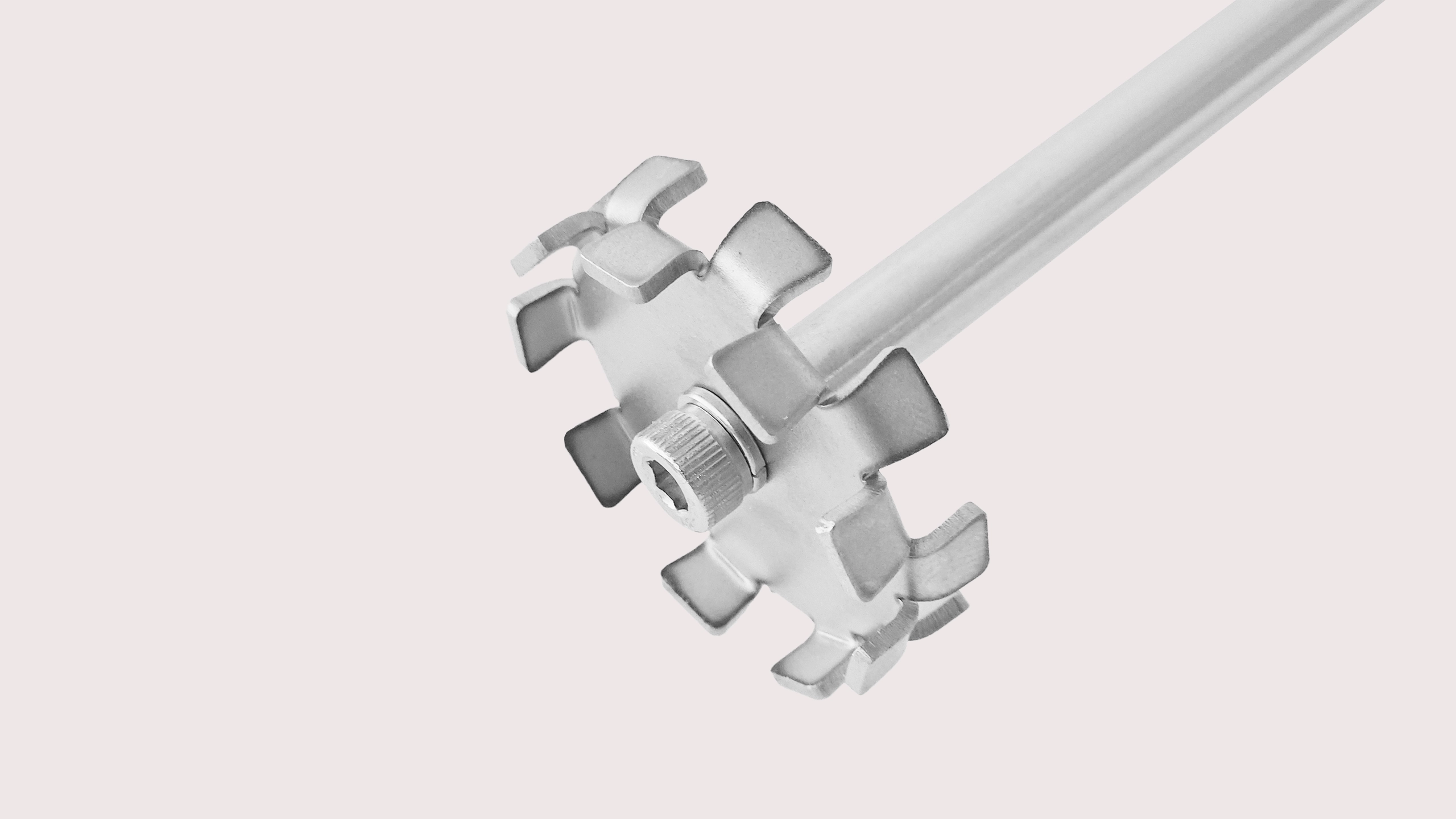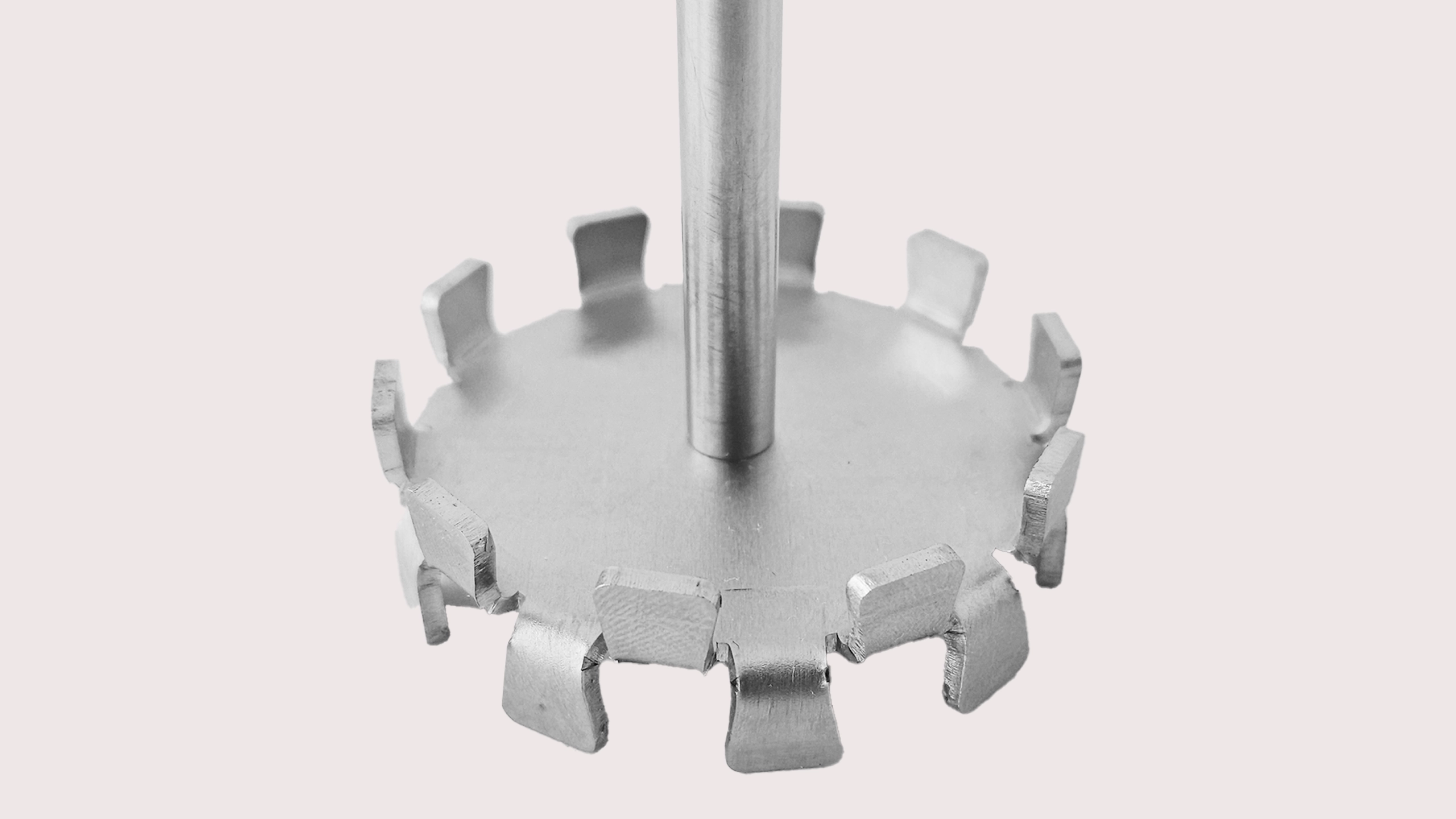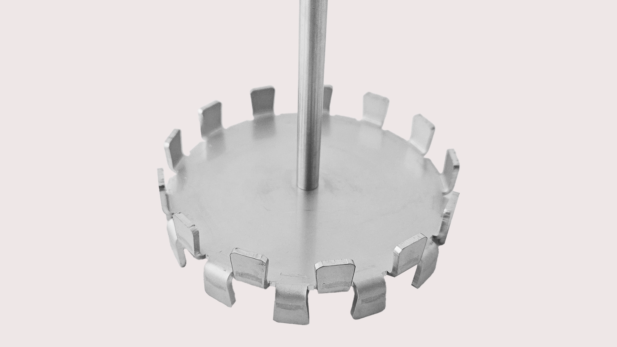 A hélice centrífuga é um acessório de agitador de laboratório desenvolvido para homogeneizar partículas em líquidos de baixa, média e alta viscosidade. Suas aletas convexas e neutras promovem fluxo intenso e radial, ideal para abertura de partículas sólidas em líquidos e mistura uniforme.