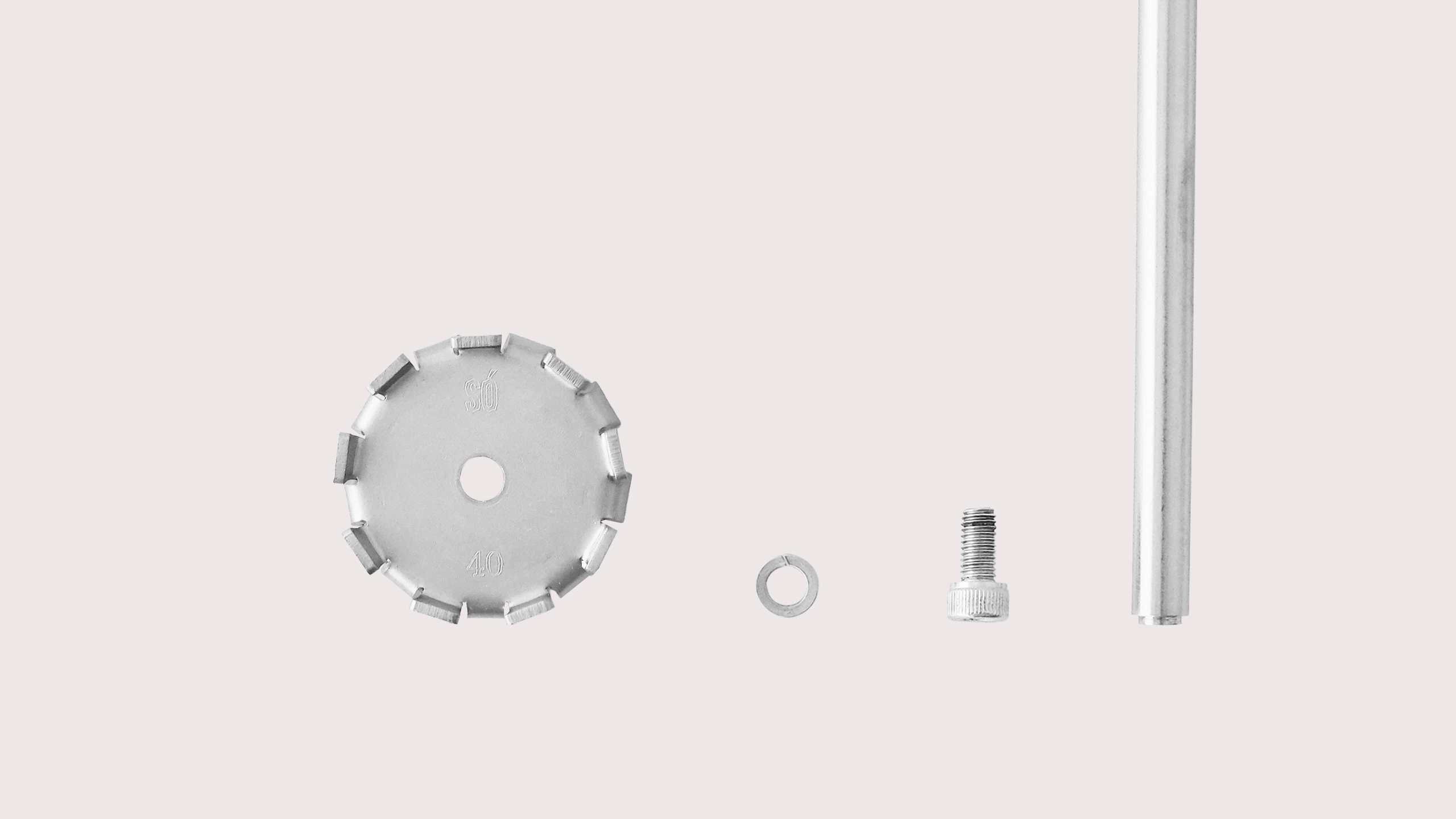 Recomendado para béquer de 100ml até 1 litro. Conjunto de haste de fixação com 350mm de comprimento e 7,94mm de diâmetro, parafuso Allen, arruela de pressão e hélice centrífuga com 40mm de diâmetro. Fabricados em aço inox 304, são ideais para acoplamento em agitadores mecânicos e furadeiras de bancada com mandril SDS.