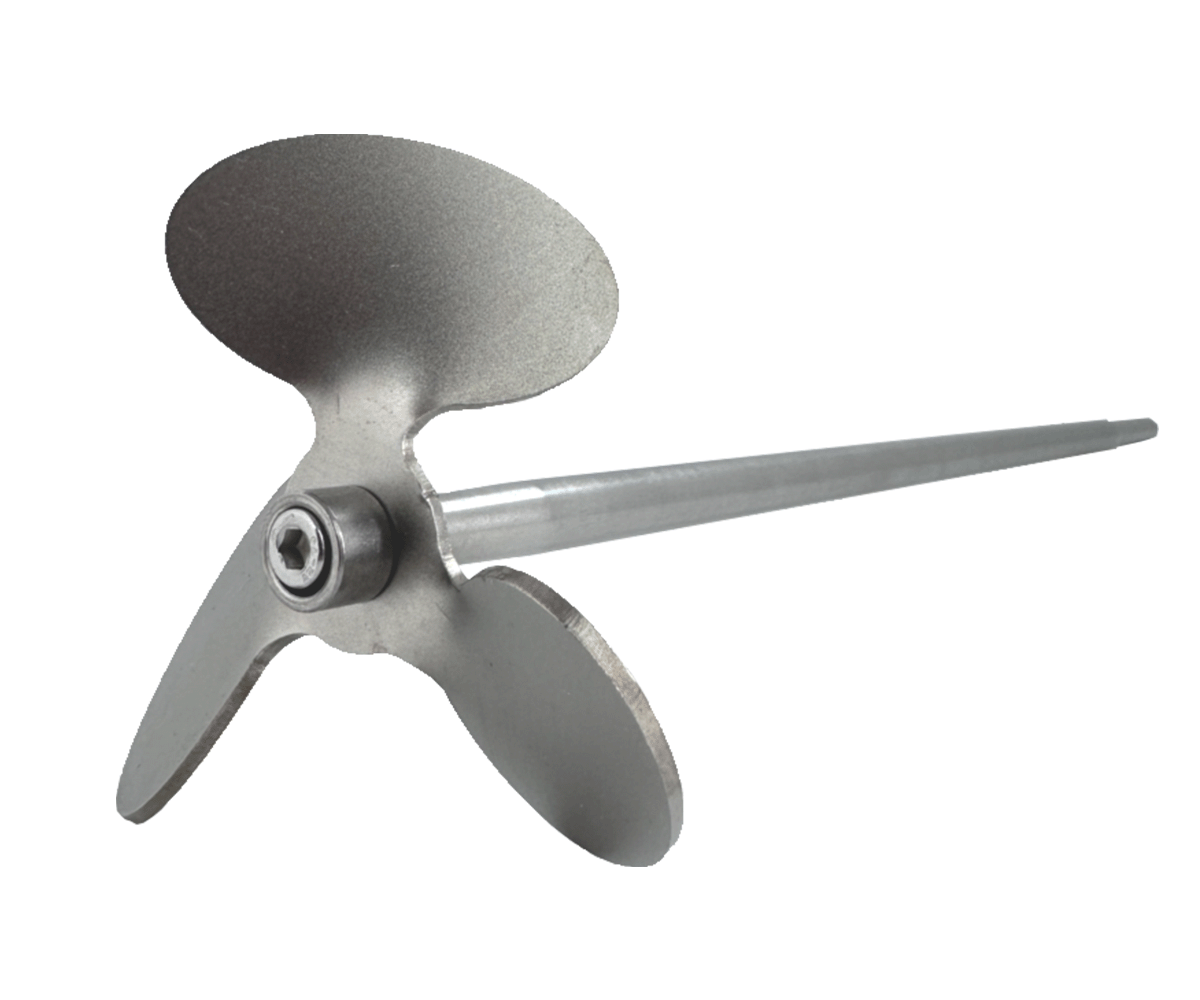 Fluidos de baixa viscosidade: O impulsor tipo hélice naval é ideal para operações de mistura, principalmente com fluidos de baixa viscosidade, devido à sua alta capacidade de fluxo de descarga (bombeamento).